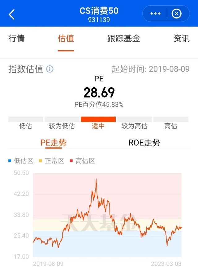 目前,中证消费50指数PE不足30倍,处于历史均值偏低的位置,这个时候参与其中相对来说是比较合适的。毕竟消费板块的整体估值,一直都没有很低过。比如白酒板块,除了塑化剂风波的时候掉到个位数,大多数时候都在30倍PE之上。