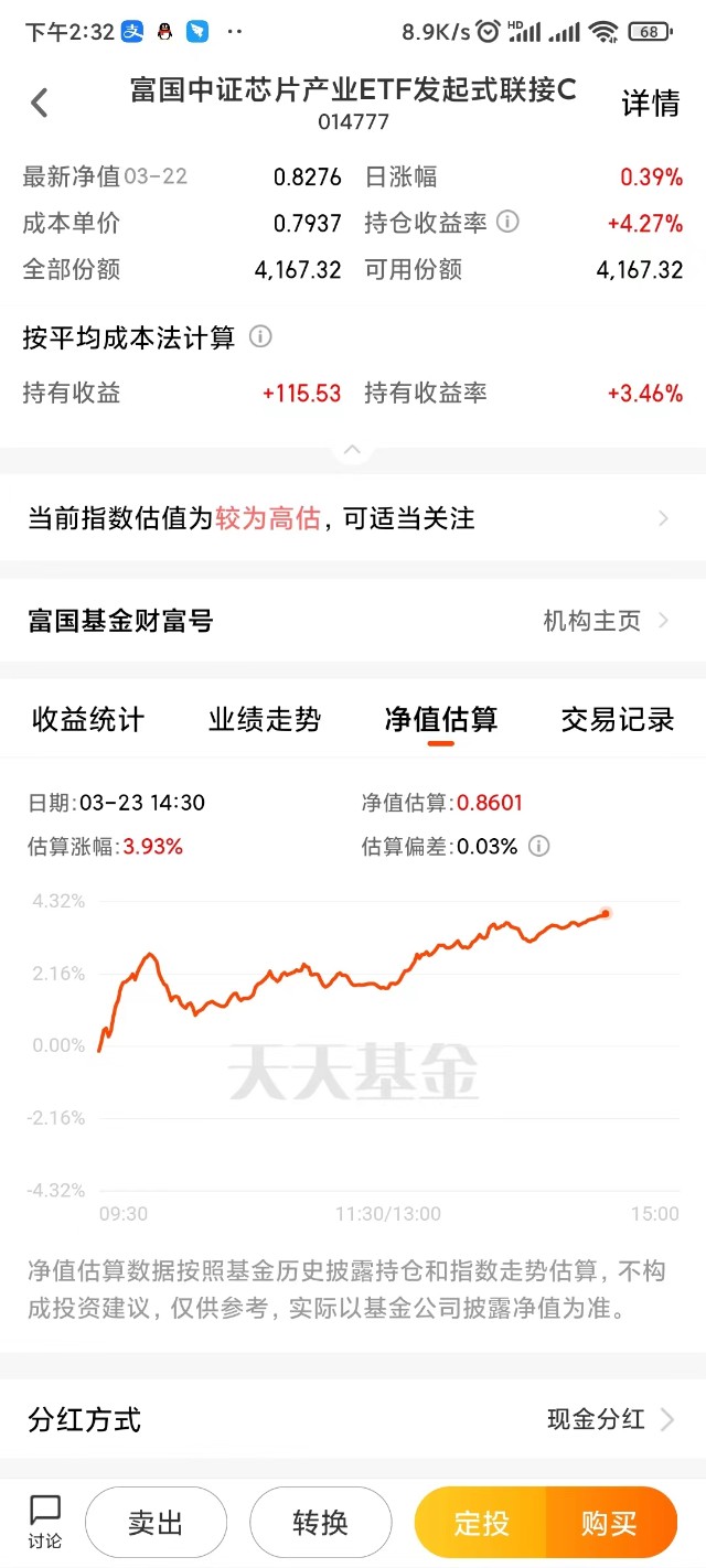 $富国中证芯片产业ETF发起式联接C(OTCFUND|014777)$这个是小沐持有的!继续拿稳嘎嘎给力!