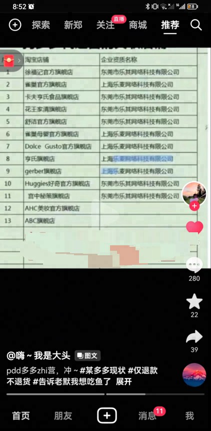 在某短视频上,有人似乎在有意引导方向,并且开始深挖与平台有密切合作关系的品牌。