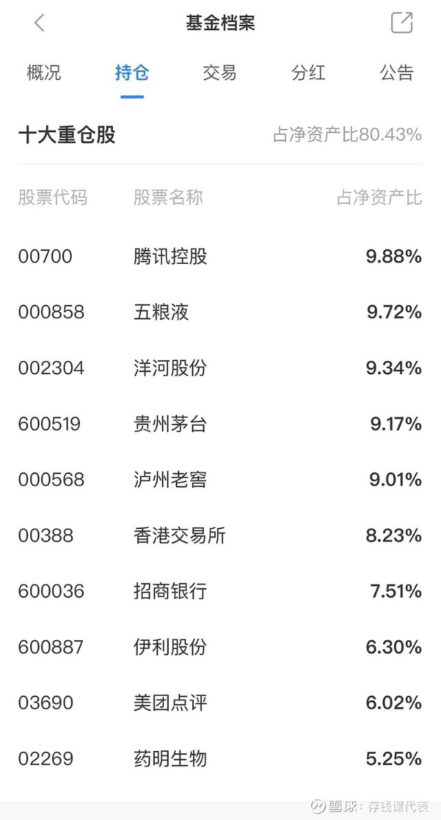 1、基金的完整持仓。