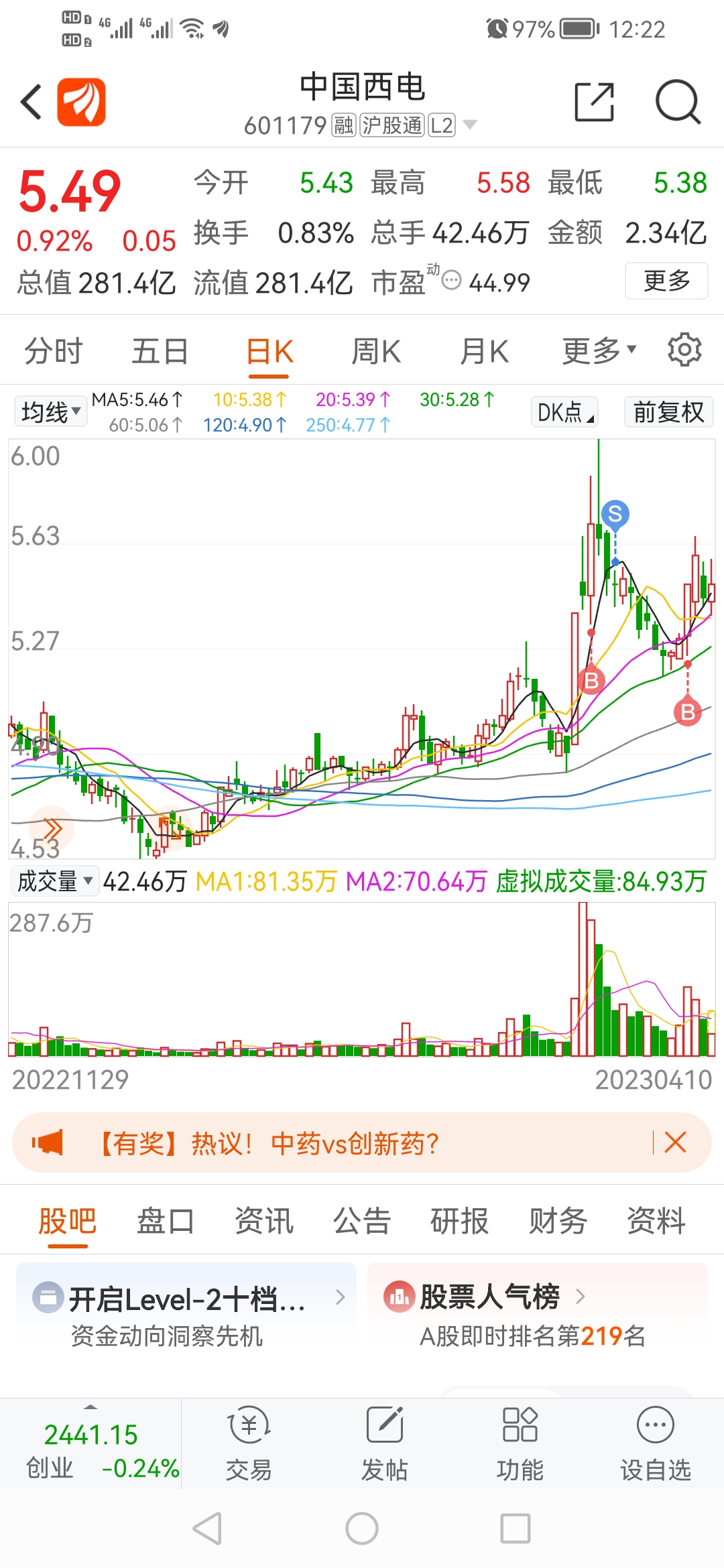 4.10今天是主板注册制新股上市首日,值得纪念,早盘10只票都大涨符合预期,毕竟如果破发某些层面的脸色会难看,其实这些票多是情绪博弈,很多人都想单车博摩托,但是节奏踏错了,就是单车变担架。关于新股昨天线下讨论了一小天,参与是一定要参与的,创业板注册制流风都参与了,主板的也会介入,关键在入场时机,新股上午只观望未动,下午视情况综合筛选而定。上午大模型不及预期,相关标的纷纷回调,核心三六零及昆仑万维下跌带偏一众小弟。流风目前的切换从ai已出来,目前手里票有半导体,中字头等相关,ai调整后还会介入。说说持有票,一些票的交易点明牌分享了,有几个票随大环境影响有些冲高回落,但整体看还是跑赢大盘,重个股轻指数依然搞起来~具体操作如下:
