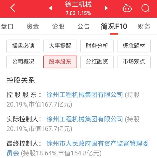 控股股东是徐州工程机械集团有限公司,最终控制人是徐州市国资委。