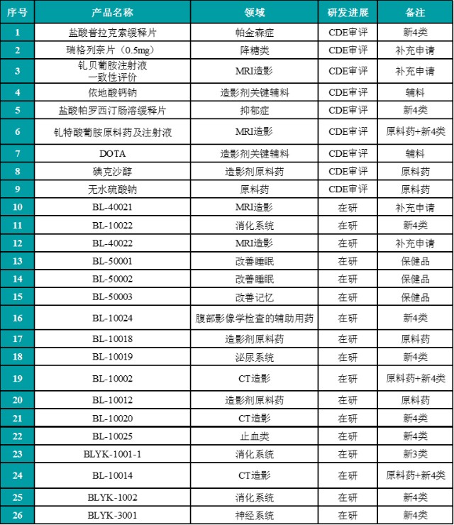 1、打造核心管理团队 调整公司发展战略 2022年公司从行业内引入多位资深、年富力强的医药专业人才加入公司管理团队,全面提升公司生产、研发、市场、销售、BD 以及供应链管理和公司运营等实力。新鲜力量的加入为公司的运营和发展战略带来新的思考和布局。 公司以实现“中国医药制造百强企业”为目标,通过持续的研发投入及产品结构调整,践行原料药+制剂一体化战略,继续保持公司对比剂在行业中的领先地位。同时在深耕对比剂的基础上,以解决临床需求为目标,进一步丰富公司产品管线,着重布局心血管、消化、内分泌等领域。通过丰富的产品线夯实公司的经营基础,寻找新的利润增长点。 2、设立研发“三驾马车” 研发投入增长93% 公司深知研发创新是医药企业发展的基础,2022年公司研发投入金额为9,976.47万元,同比增长93.37%,占全年的收入比重达到13.03%,创近几年历史新高。 2022年公司新成立北京北陆益康医药研发有限公司,作为公司仿制药高端制剂和创新药研发平台,与公司原有的北陆研究院、企业发展部(BD)构成公司多层次研发体系。 三个研发模块明确了各自的定位、策略、重点研发领域和三年的工作规划等。目前公司在研及立项的研发品种接近40项,未来两到三年,公司将会陆续有新品上市,进一步丰富公司产品线。公司目前在研项目如下表: