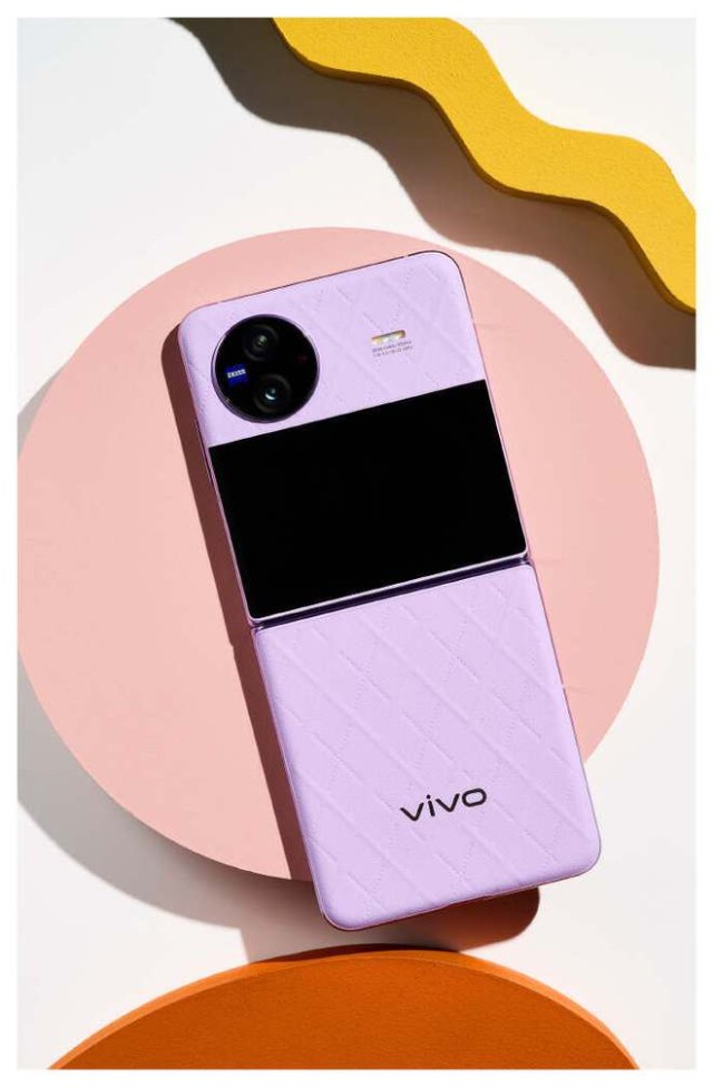 相比之下,vivo X Flip采用了上下折叠屏设计,整体更加小巧精致,玩法多样,设计感十足。这款折叠屏手机采用全新配色和材质,尤其是菱紫配色,经典的菱格纹理加上立体皮革工艺,让人一眼沦陷,轻松实现视觉、触觉体验的双重提升。