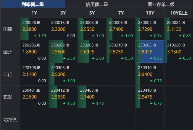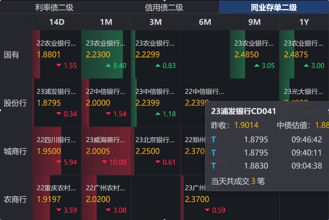 附:红色——债市上涨;绿色——债市下跌;灰色——平盘;白色——暂无成交,无法分析
