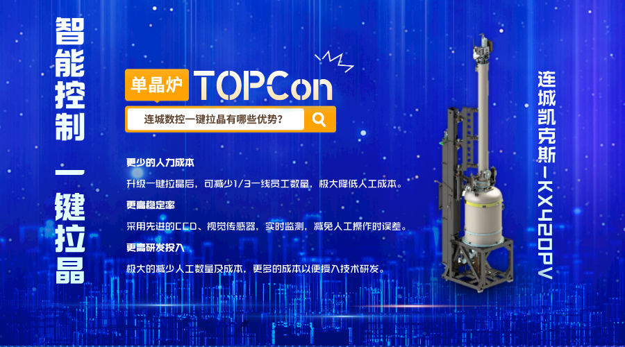 光电转换效率对硅片缺陷和氧杂质含量较为敏感,连城数控融合了多年在光伏及半导体领域的先进技术优势,继2019行业首创KX380PV主流机型后做出了又一次跨时代创新,2022率先推出大尺寸单晶硅生长平台——KX420PV。