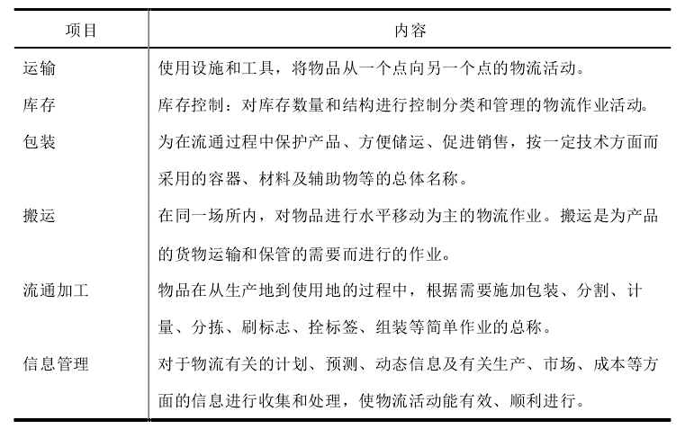 物流是指根据客户的需求,利用运输、保管、配送等手段,将原材料、半成品、成品或相关信息,从产地到消费地的计划、实施和管理的全过程,具体内容如下图。