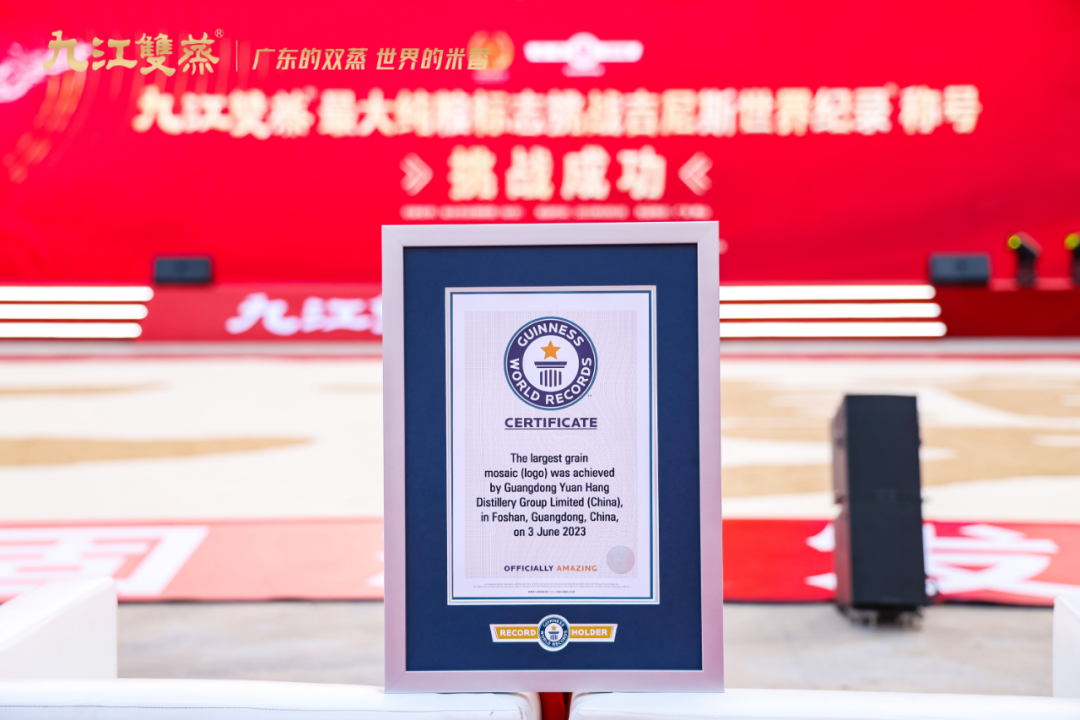 此次成功挑战吉尼斯世界纪录,也是对“纯粮固态发酵白酒标志产品”认证的致敬,九江双蒸希望通过创造世界最大纯粮标志来进一步推动米香白酒、粤酒的高品质发展,提升米香品类的影响力和关注度。