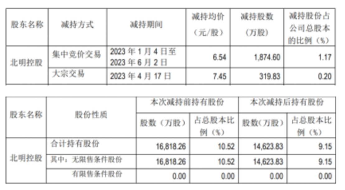 中国产经观察消息:常山北明(000158)近日发布公告,公司收到北明控股、李锋先生和应华江先生分别出具《关于减持完成的告知函》,截至2023年6月2日,北明控股、李锋先生和应华江先生本次实际减持合计约3073万股,占公司总股本的1.92%,本次减持计划已实施完毕。