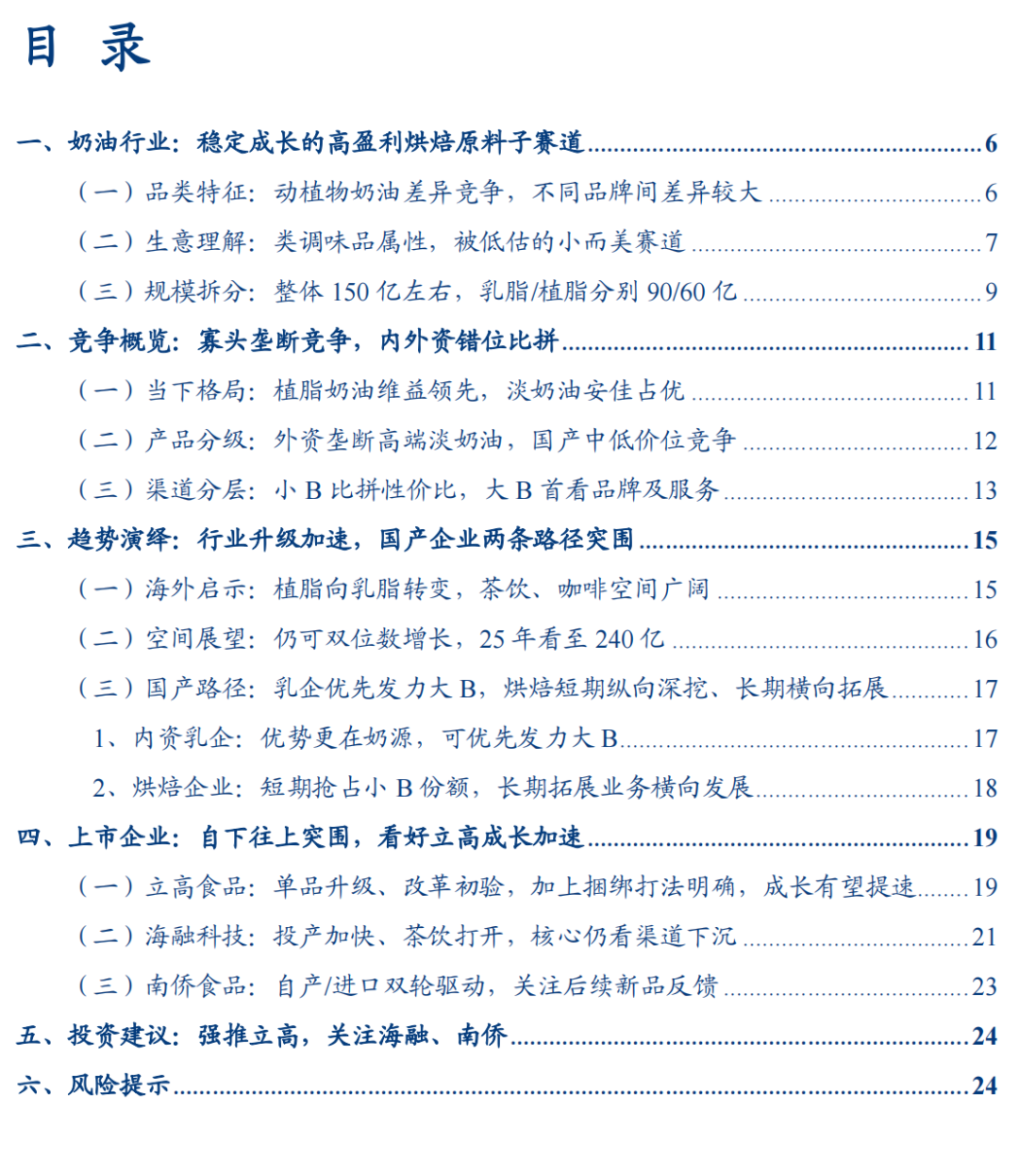 1) 生意模式:奶油究竟是一门怎样的行业? 2) 竞争概览:行业格局如何,企业怎样竞争? 3) 趋势演绎:未来向何处发展,企业后续成长路径在哪?