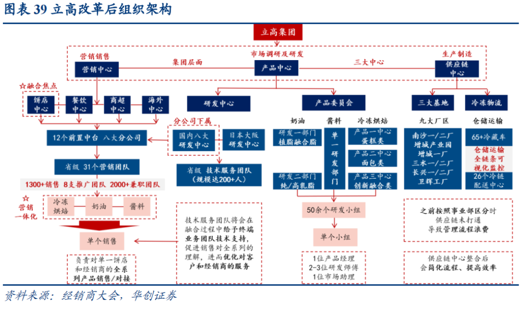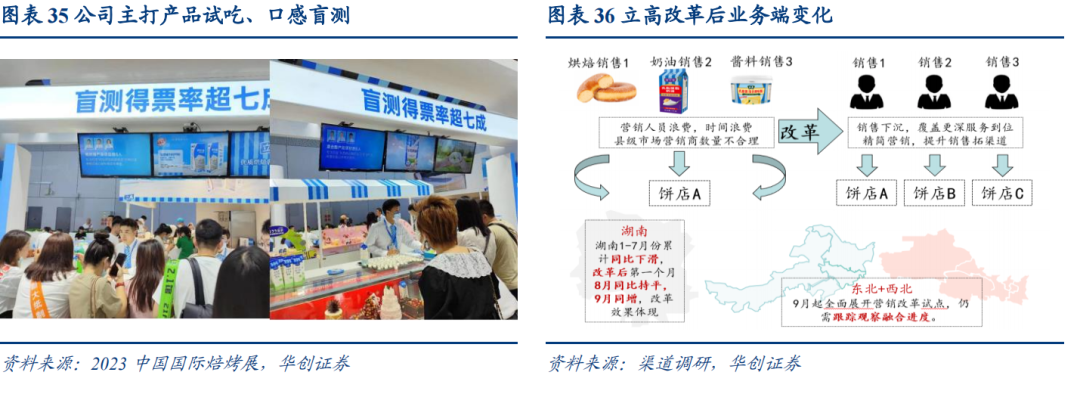 企业建议:产品研发改善已有兑现,值得进一步补齐服务能力差距。公司产品中心已设立混合脂、稀奶油等项目小组针对性研发,从盲测得票角度来看,依乐斯、稀奶油360PRO等产品力毋庸置疑,公司推新能力已有明显提升。产品参数、口感对比等固然重要,但渠道服务也是中大型客户选品的重要考虑因素,公司当前分设地区研发中心,专注客户服务及方案研发,且配备200+人技术团队直接进行服务,但客观来说,本身立高前期服务能力存在一定差距,加上渠道融合后,短期团队效率或有损失,且部分员工经验&能力短期难免欠缺,故公司在将单品打磨到极致的同时,也值得将人员培训、服务提升等摆在更高位置。