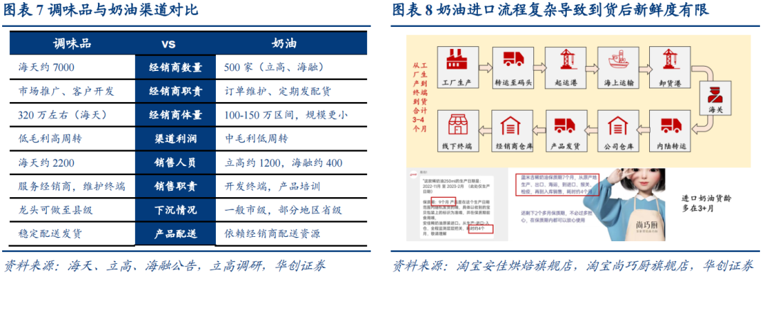 但在渠道、供应链等具体运营环节方面,奶油与调味品依旧存在较大区别。具体来看: