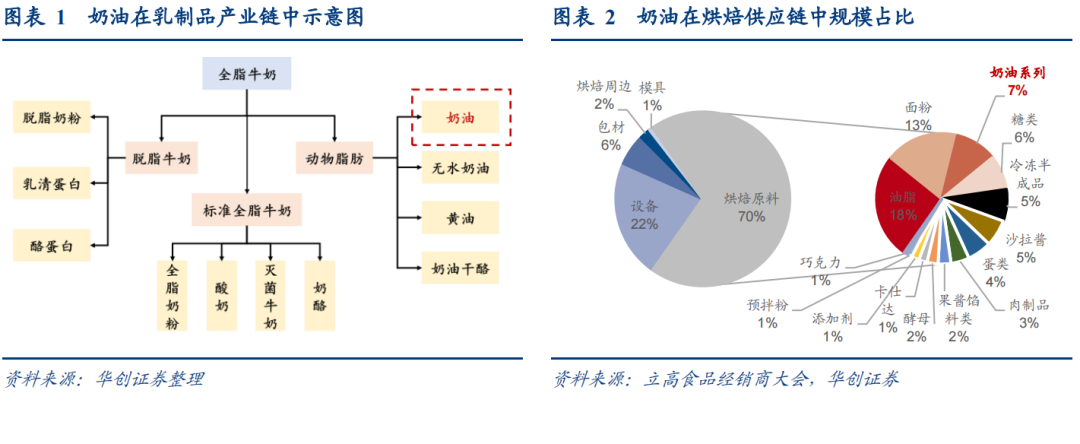 [1] 据雀巢专业餐饮食品业务总监吕航在乳制品深加工产品科学发展论坛上的发言,2018年奶油下游渠道中烘焙/街饮/咖啡厅占比分别为56%/21%/6.2%。据立高总经理陈和军在立高战略新品发布会暨经销商大会上的发言,当前奶油市场规模在128亿左右。