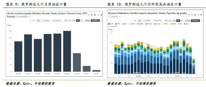 沙特2023年的财政平衡油价由原来的66.8美元/桶上调到了80.8美元/桶。油价上涨不仅关乎财政平衡,也是沙特王储计划的“2030年愿景”实施的坚实后盾。沙特以减产支撑高油价。俄罗斯也同样迫切需要更高的油价。俄罗斯积极卖油提升收入,5月俄罗斯海运出口较2月增长,俄罗斯5月成品油出口与2月份基本相当。
