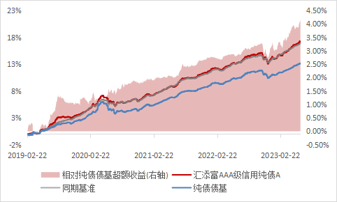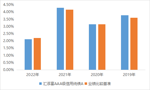 汇添富AAA级信用纯债A于2019年2月22日成立,至今每一个完整年度都取得了正收益,成立以来年化收益达到3.72%,同期基准年化3.66%。