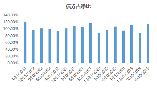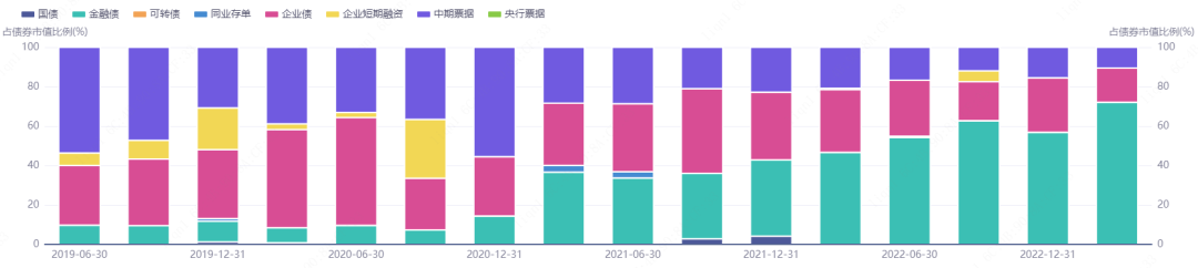 从各季度的券种配置看,汇添富AAA级信用纯债以中期票据、企业债、金融债作为主要配置方向,尤其是2021年以来金融债的配置比重逐渐加大,2023Q1达到72.13%。