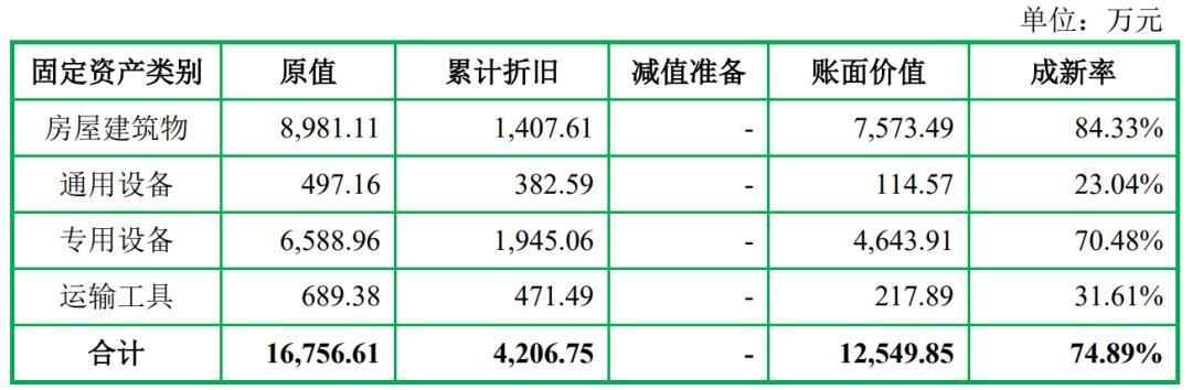 截至2022年6月30日,森峰科技主要固定资产情况如下表所示,原值总额为1.7亿元,房屋建筑物8,981万元,专用设备6,589万元,通用设备497万元,设备类固定资产原值合计7,086万元,占固定资产原值比例为42.29%。