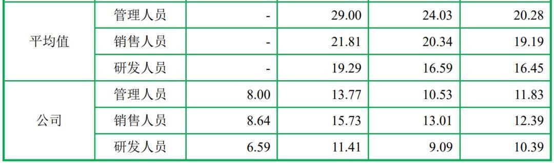 发行人的销售费用率居高不下,远高于同行业可比公司水平。报告期内,发行人销售费用分别为1.2亿元、8,385万元、9,704万元、以及5,722万元,合计3.6亿元!占营业收入比例分别为22.09%、11.48%、11.47%和12.95%。发行人与同行业可比公司销售费用率情况对比如下表所示,行业可比公司平均销售费用率为9.72%、8.82%、7.52%以及6.83%,可以看到2022年1-6月以及2019年发行人的销售费用率高达行业平均水平的两倍。