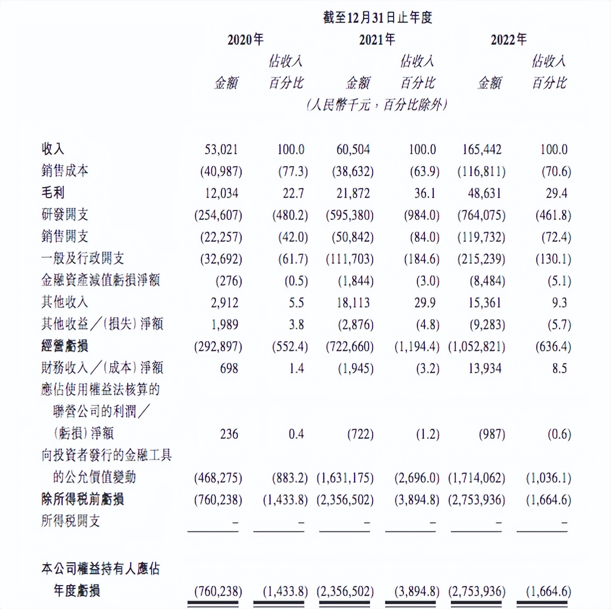 招股书显示,黑芝麻智能在2020年、2021年及2022年的收入分别是5300万元、6050.4万元、1.654亿元,3年累计收入仅为2.79亿元。