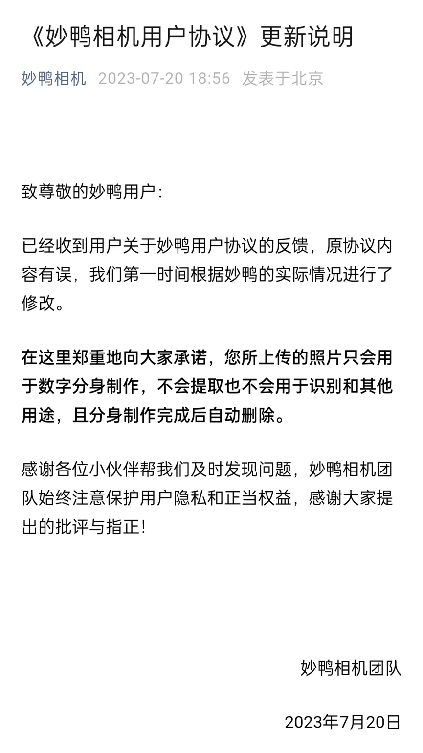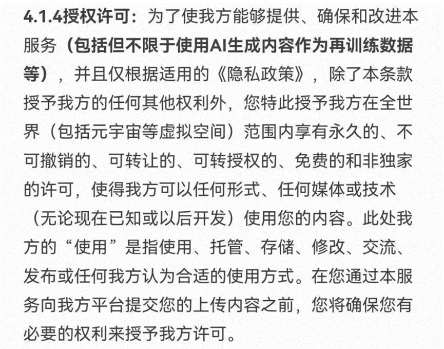 同时,细心网友发现妙鸭相机的用户协议堪称“霸道”,在原版协议中,用户用AI生成的内容,永远都能被妙鸭用于多个用途,包括商用。