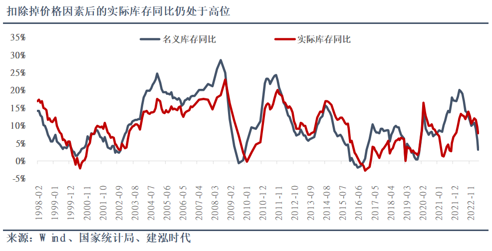 从历史经验来看,“工业生产者出厂价格指数”PPI的走势与库存周期的相关性较高。PPI拐点领先于库存周期拐点短则1个月、长则10个月,平均为3-5个月。PPI可以作为观察库存周期的领先指标,PPI见底意味着新一轮库存周期或将在半年内到来。由于大部分厂家难以通过判断库存底部来进行去库存和补库存,一般通过价格上涨来补库存、价格下降去库存,因此当没有大政策出台以及经济发力点时,总需求回暖和价格企稳的信号对于判断库存拐点十分重要。当主动去库存的压力不再时,价格下行的压力也开始减轻,企业利润受PPI触底回升影响其跌幅逐渐收窄,营收增速有望反弹;叠加PPI跌幅收窄会带动成本率下降,有望改善企业的利润率,因此PPI见底回升将会带来积极的影响。目前PPI的下行态势已初步见底,预计三季度将迎来触底反弹,鉴于PPI拐点平均领先库存周期拐点3-5个月,预计到四季度有望迎来库存周期拐点。但考虑到价格因素,用“产成品存货同比-PPI同比”来表示实际库存同比,目前实际库存位置仍然偏高,从1998年以来的数据来看,目前实际库存同比的分位数约为39.2%,远高于名义库存12%的分位数,实际库存仍有下行空间,后续仍将需要结合政策力度和经济修复情况来判断库存周期拐点。
