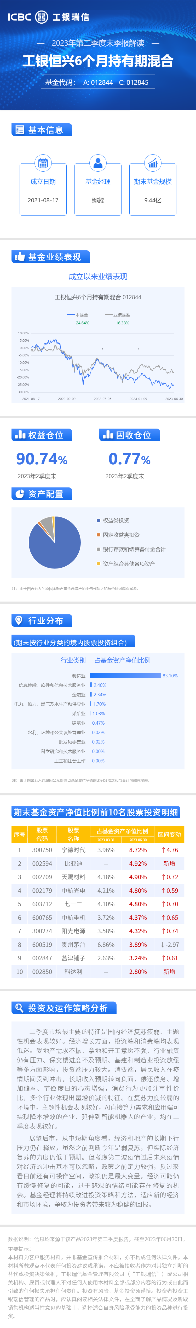 工银恒兴6个月持有期混合--2023年第二季度末季报解读