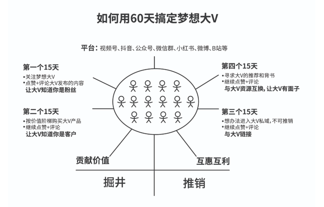 找到梦想大V后,你要用60天搞定梦想大V的方法去搞定他。