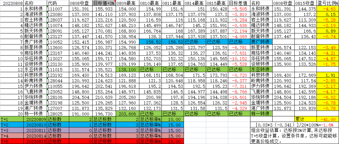 《尾盘可转债选股(短线目标)收益估算汇总表》同步更新!!