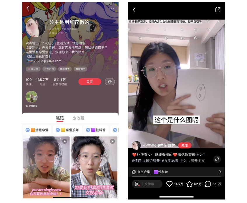 女性情感话题从不缺热度,在小红书更是聚集着强大的女性消费群体,更容易创作出强大的爆款内容。创作者和品牌或可以通过@公主是用鲜花做的 这一博主的内容,深刻洞察女性心理,围绕内容框架、选题挖掘、呈现形式三大方面,借助这一热门议题创作内容,满足用户情感需求,链接更多女性消费者。