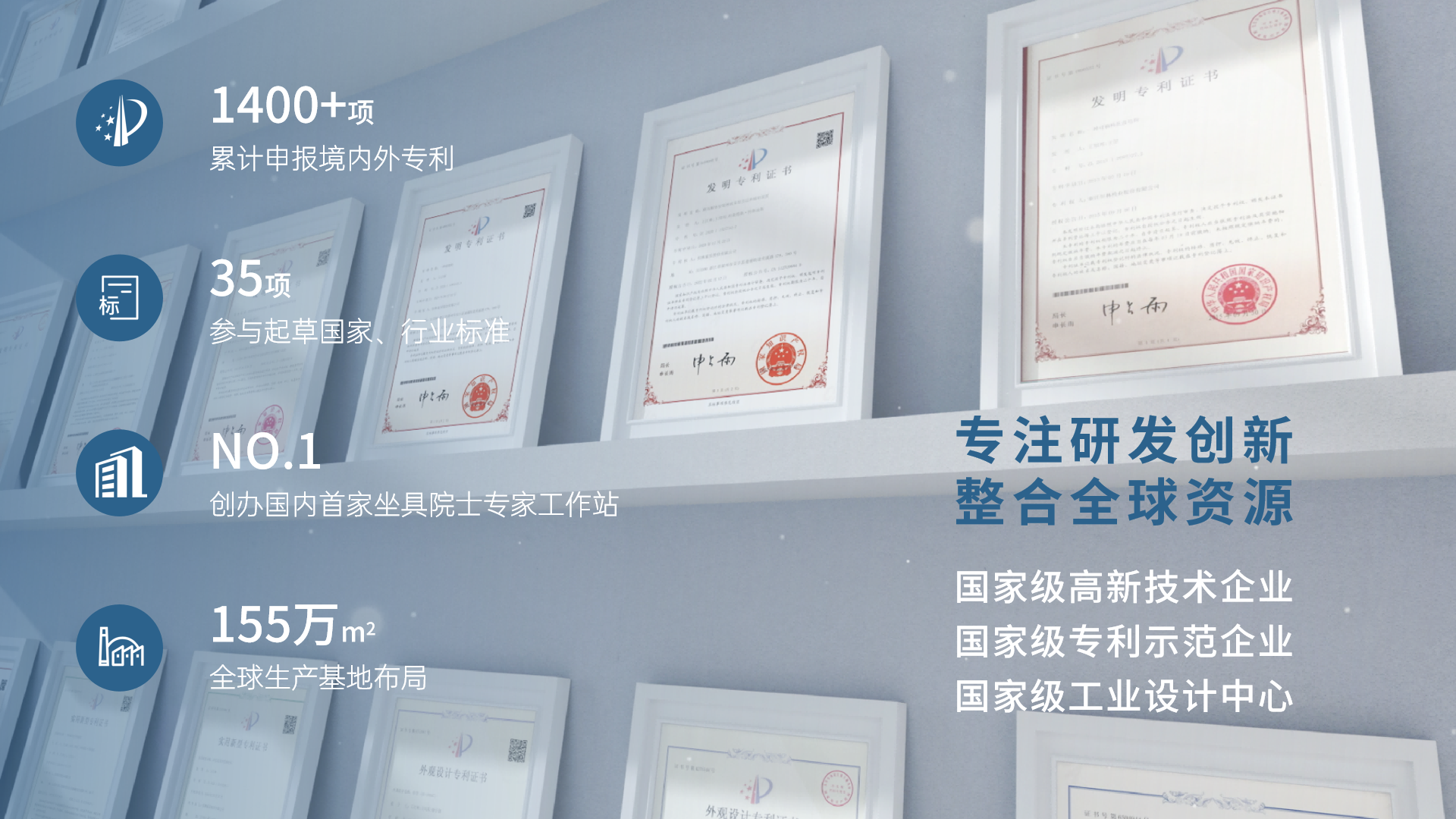 公司以“成为世界一流绿色家居企业”为愿景,以对座椅二十余年持续而朴实的专注,确立了在行业内的重要地位,累计申报境内外专利1400余项,主导与参与起草了多个国家标准、行业标准、团体标准,我国现行有效的标准中,公司主持、参与制定的国家标准为 27 项,行业标准为 8 项,主持制定团体标准为 3 项。公司在经营上的不懈努力亦赢得了行业内的高度肯定,产品先后荣获“德国红点奖”、“If设计大奖”、“中国家具设计奖”等国内外多项荣誉;拥有国家知识产权优势企业、国家专利示范企业、国家级工业设计中心、智能化功能坐具省级企业研究院、智能化功能坐具省级高新技术企业研发中心、浙江省企业技术中心、浙江省工业设计中心、浙江省博士后工作站等资质。