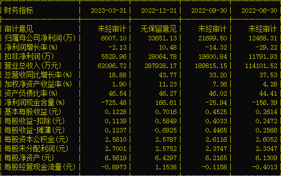 1Q23实现营收6.2亿元,YoY+18.9%;归母净利润0.6亿元,YoY-2.1%;扣非归母净利润0.55亿元,YoY-4.3%。2023年一季度业绩基本符合市场预期。
