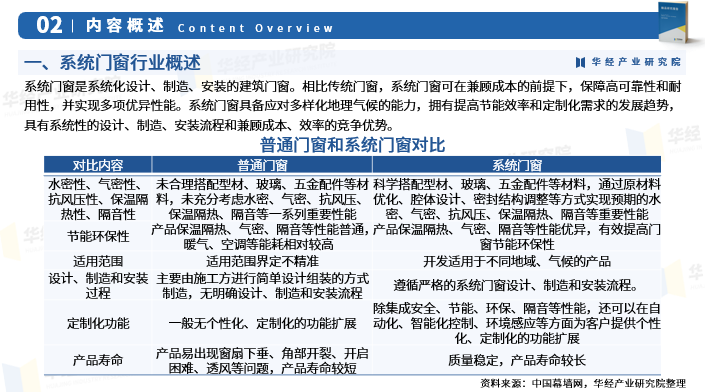 华经产业研究院研究团队使用桌面研究与定量调查、定性分析相结合的方式,全面客观的剖析系统门窗行业发展的总体市场容量、产业链、竞争格局、经营特性、盈利能力和商业模式等。科学使用SCP模型、SWOT、PEST、回归分析、SPACE矩阵等研究模型与方法综合分析系统门窗行业市场环境、产业政策、竞争格局、技术革新、市场风险、行业壁垒、机遇以及挑战等相关因素。根据系统门窗行业的发展轨迹及实践经验,精心研究编制《2023-2028年中国系统门窗行业市场深度分析及投资潜力预测报告》,为企业、科研、投资机构等单位投资决策、战略规划、产业研究提供重要参考。
