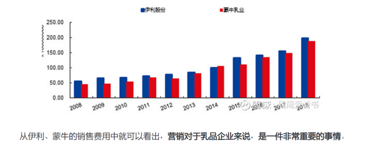 从另一个角度来说,两家企业肯支出高昂的营销费用,取决于它的收入规模已经极大。分摊到每一个产品的边际成本会随之递减。折合到每盒牛奶上的成本非常低,这就是企业拼命都在追求的规模效应。
