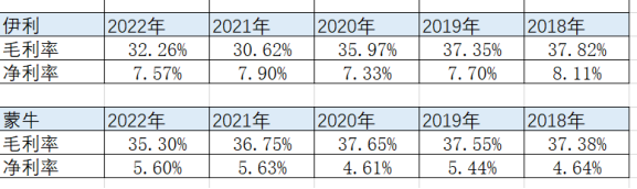 下图是我们整理伊利和蒙牛两家的数据对比: