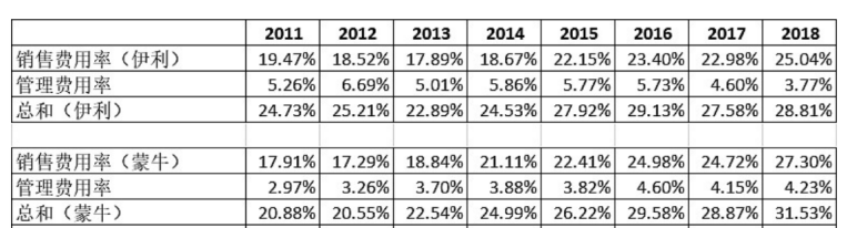 伊蒙两家在行业内是多年的竞争对手。若两大龙头企业同时降低营销费用,那么双方的净利率都会有所提升,皆大欢喜。但是商场如战场,谁又肯主动后退半步呢?假如真的出现,则极有可能发生的情况就是,有一方降低,另一方不降。那么市场份额自然就会偏向降低的那方。毕竟一个NO.1,一个NO2。还可能会给第三、第四、第五名占领市场份额的机会,(相信它们在一直等待这个机会),所以谁也不敢松懈。