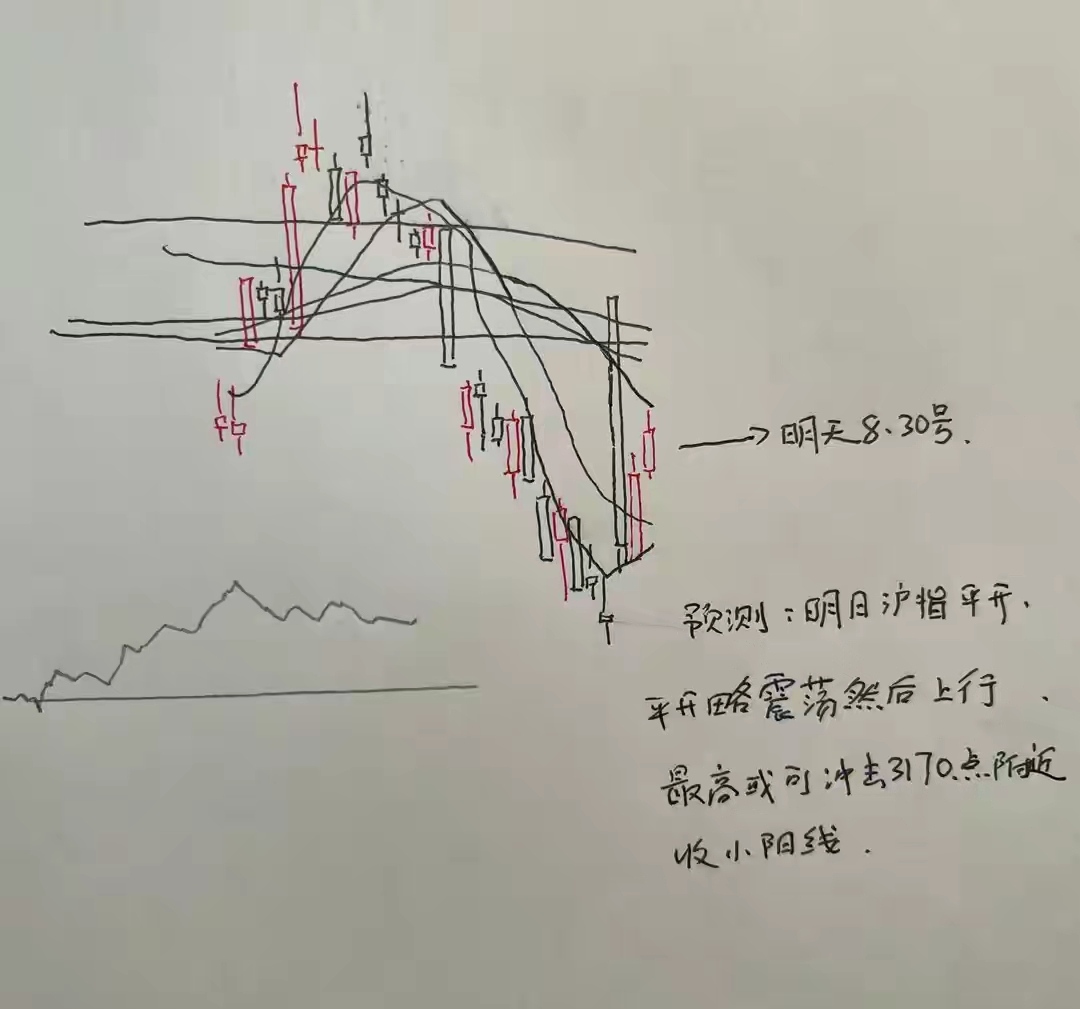 所以综合以上分析,我对于明天市场指数的走势做出了乐观的预判。我认为明天市场再小涨一天没有问题。明天市场应该会站稳3144点上方。这是明天的任务。
