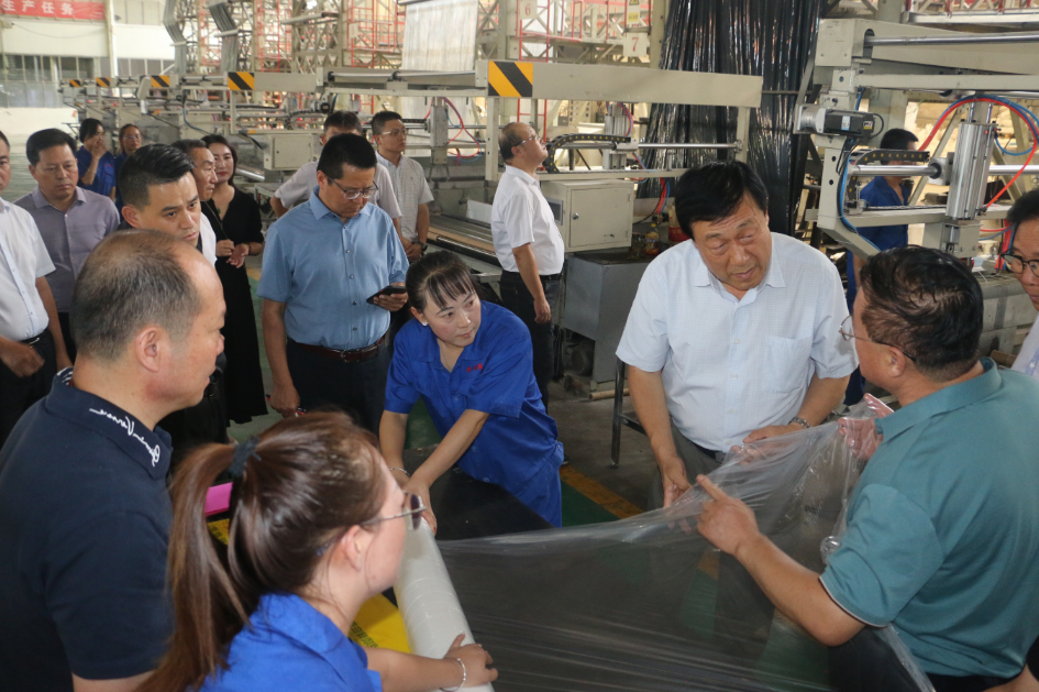 调研组一行经过现场参观,实地了解地膜生产企业发展及其品牌建设等情况,了解改县区推进农膜污染处理工作的具体举措及成效,指出,发展特色有机农业是后小康时期满足消费升级,助力乡村振兴的必然选择,要始终坚持在保护中发展,走绿色精品发展之路。他提出,政府工作的顺利开展需要与实力、规模相当的企业胡同互动,拿出新产品、新农具、新技术、新用途、新机制才是发展特色农业产业,巩固废旧农膜防治工作的初步成效。农牧产业主体要在不断优化生产方式上下大力气、花大功夫,探索推进生态环保的生产经营方式,结合本地实际,借力本地优势,不断优化经营模式,提高产业发展效益。