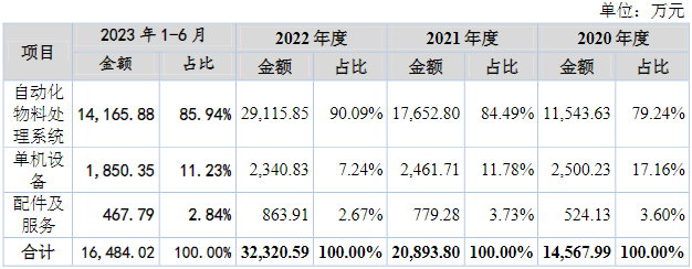 从营收结构来看,自动化物料处理系统是公司的核心产品,营收占比最高,营收金额持续增长,2020年起均在70%以上。