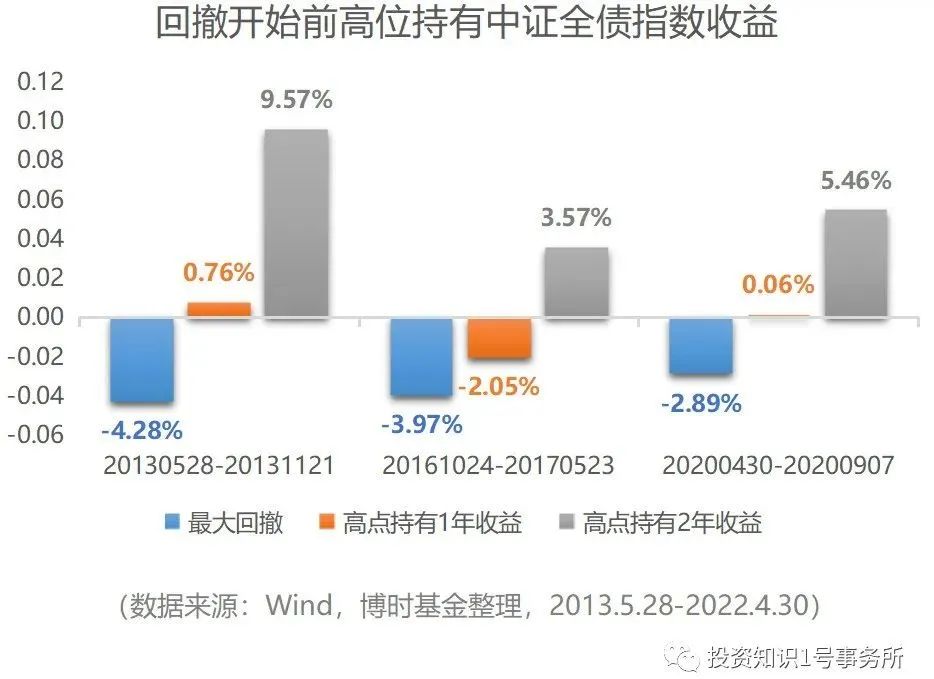 以这三个时点为例,即便是在最坏的情况下,我们分别在回撤前的最高点投入中证全债指数,结果会如何?