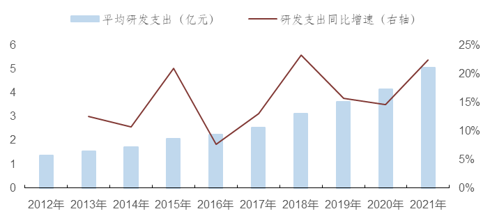 图:上市国企平均研发支出中位值及同比增速