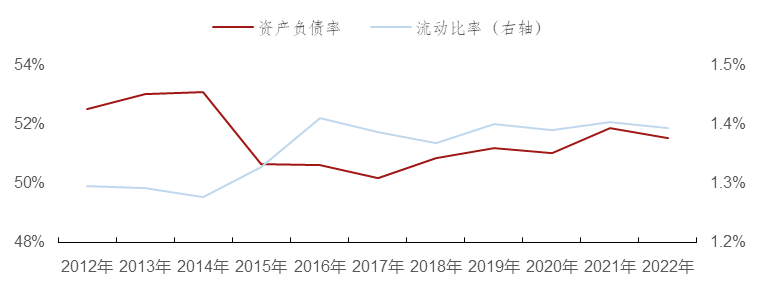 图:上市国企资产负债率和流动比率中位值