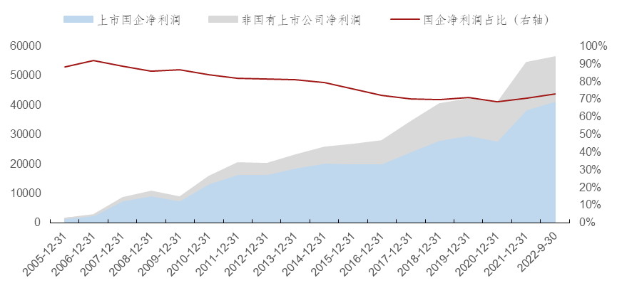 图:上市国企净利润(亿元)及比重