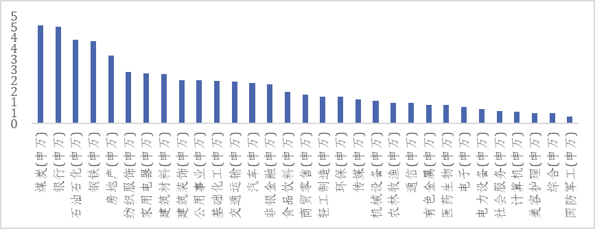 图:近5年各行业分红率均值(%)