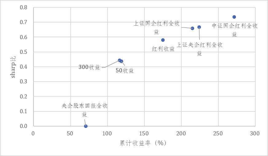 中证国企红利全收益指数的年化夏普比率为0.73,领先同类指数及市场主要宽基收益指数,说明其获得超额收益的能力相比较而言更为出色。