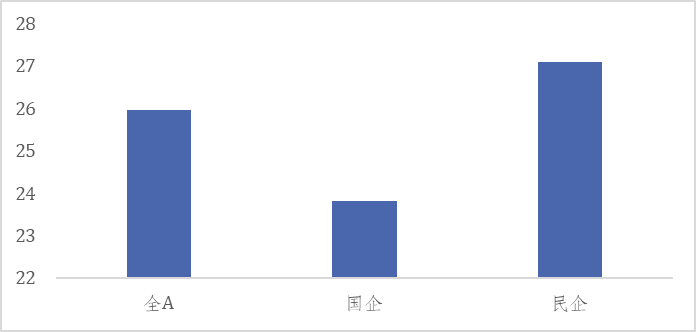 国企价值现实与创造不匹配,国企上市公司面临估值偏低,价值实现与价值创造不匹配的问题。中证国企指数PE长期低于中证民企指数。从A股上市公司情况来看,市场对其估值定价偏低。当前,A股上市公司PE TTM中位数为26倍,国有企业PE TTM中位数为23.8倍,显著低于民营企业27倍的PE水平。