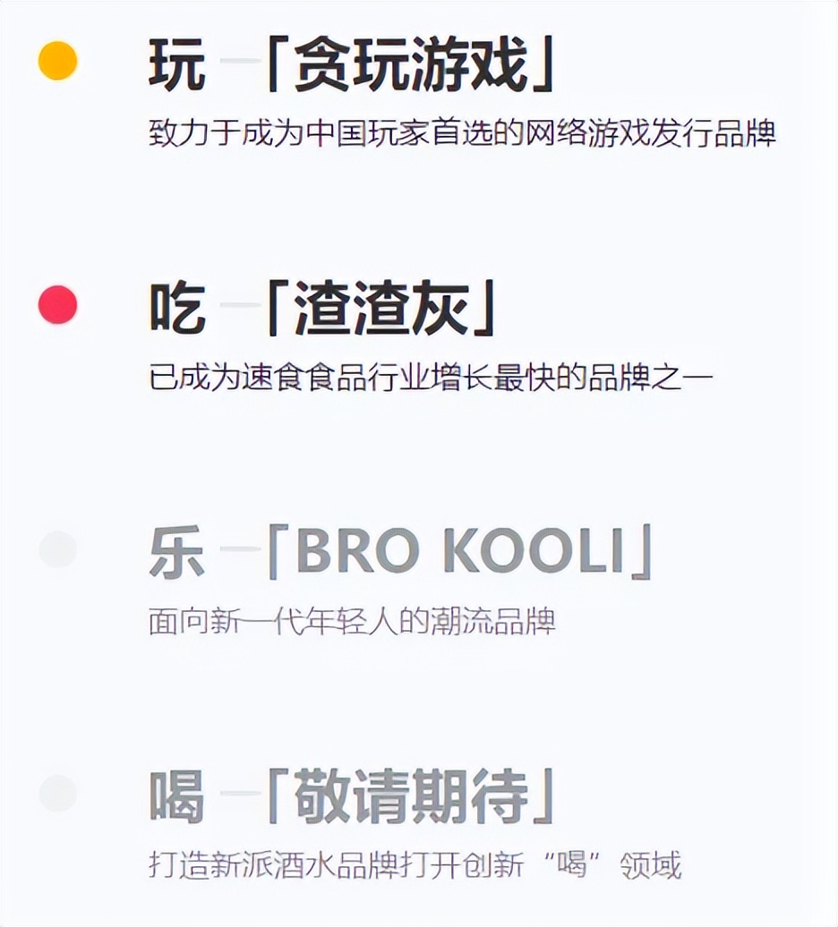 游戏板块的逐渐壮大,中旭未来没有止步于此。近年来中旭未来也将业务拓展“吃”和“乐”两大板块,成功孵化出了“渣渣灰”即食品牌和BroKooli潮玩品牌。由于,中旭未来旗下最具影响力的传奇系列游戏,其核心用户主要集中在30-39岁年龄段,而潮玩和即食食品的“加入”有助于更好的触达95后、00后,在扩大目标用户群体上起到了补充的作用。