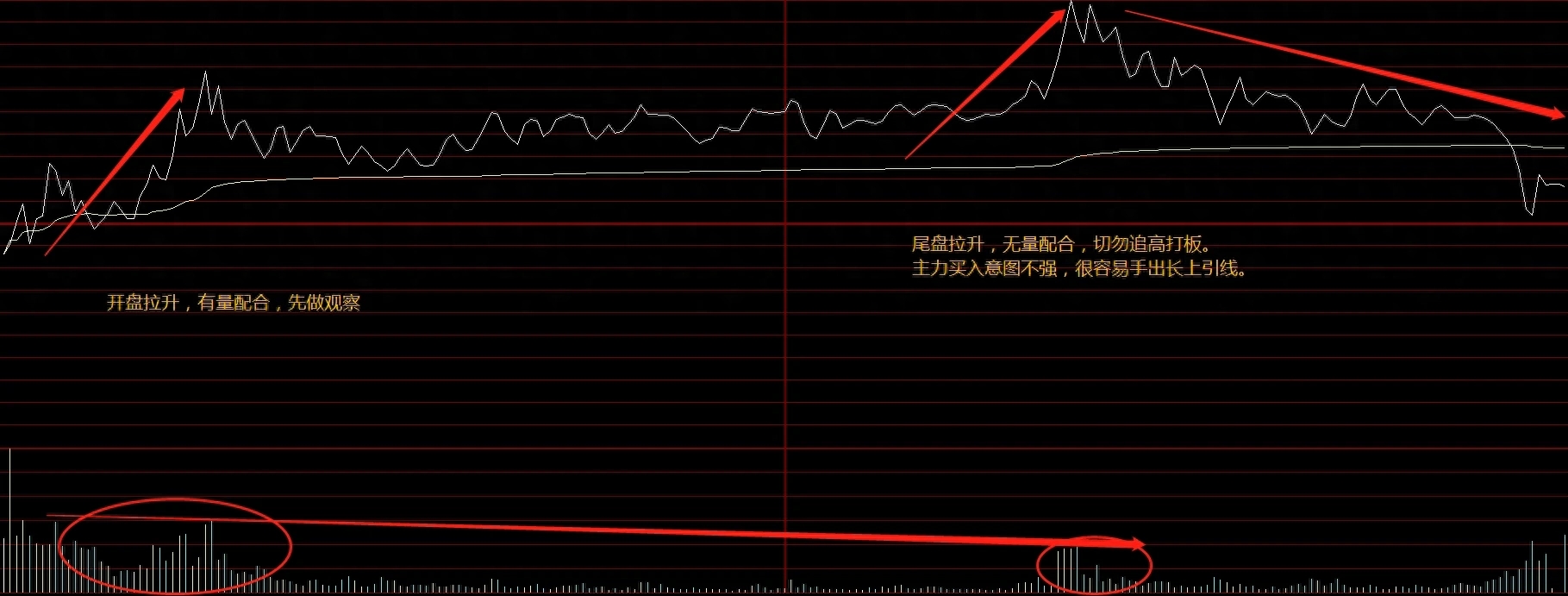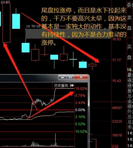 四、大势环境差或者主线退潮阶段,领涨或补涨品种直线拉升却未触及封涨停,尤其是早盘开盘不久出现这样的现象,很有可能是主力在吸引注意力跟风盘之后掉头向下!往往是诱多,不宜扫板。