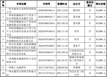 在这些专利中,有12项为材料制造环节的发明专利,2项为废料回收相关的发明专利,1项为表面处理环节的发明专利.从继受取得时间看,一种稀土永磁磁环的制备方法为2016年,剩下的均为2020年和2021年取得。英思特主营业务产品是单磁体应用器件、磁组件应用器件,形成主营业务收入的发明专利,实际大部分在2020年和2021年才继受取得。是否可以等同于:形成产品收入的一整套技术,并非自研而来?