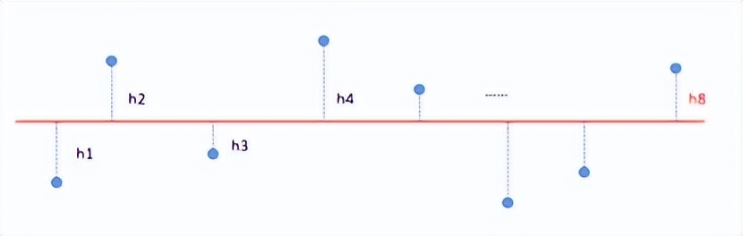 跳过公式,我用一张图稍加说明。CCI计算的就是最后一个蓝点距离红线的距离(h8)和图中所有蓝点到红线平均距离的比值。