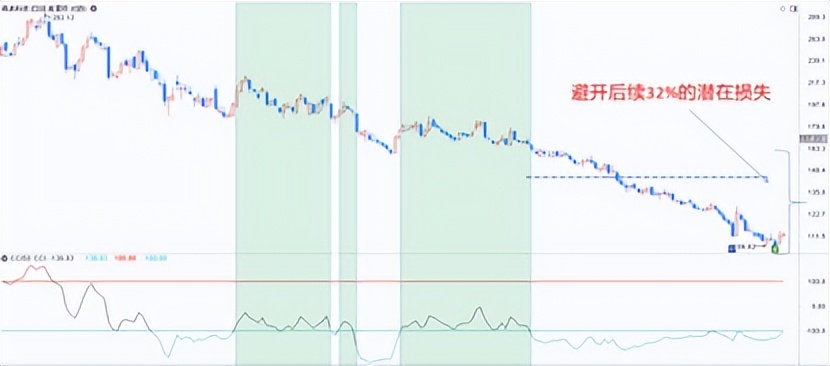 正因CCI反应灵敏,对下降趋势的每个反弹都试图捕捉,经常是连续出现3、4个进场信号,却没有离场保护。